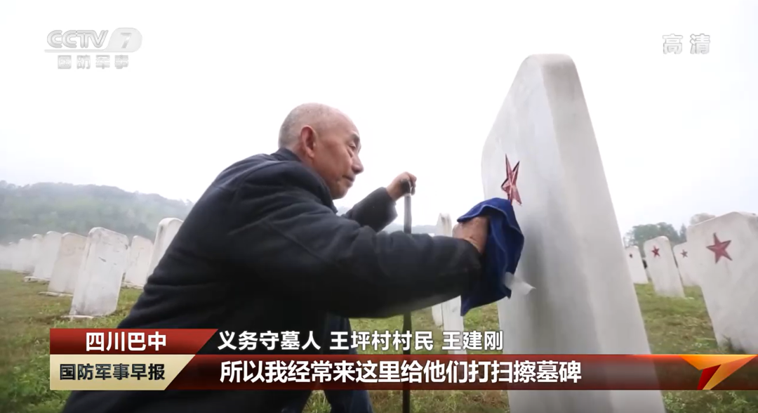 王建刚与烈士陵园。来源/cctv7国防军事早报截图